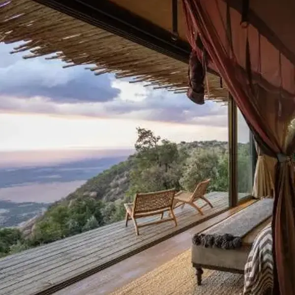 This property is, to put it mildly, an absolute marvel. You approach through a doorway dug into a man-made tower of stone and mud. It’s like entering a Bond villain’s lair, but with fewer sharks. Once those doors swing open, they reveal a path leading to that unbelievable view over the Mara. It’s dramatic, cinematic, and 100% designed to make you feel you’ve stepped into somewhere rare and extraordinary. Wild Hill was clearly designed with the light in mind. As the sun shifts, the wallpapers start to glow, casting a warm, gentle radiance that feels almost theatrical. By evening, the scattered candles and flickering fireplace turn up the lodge’s intimate, fireside ambience. The whole aesthetic is absolutely on point.